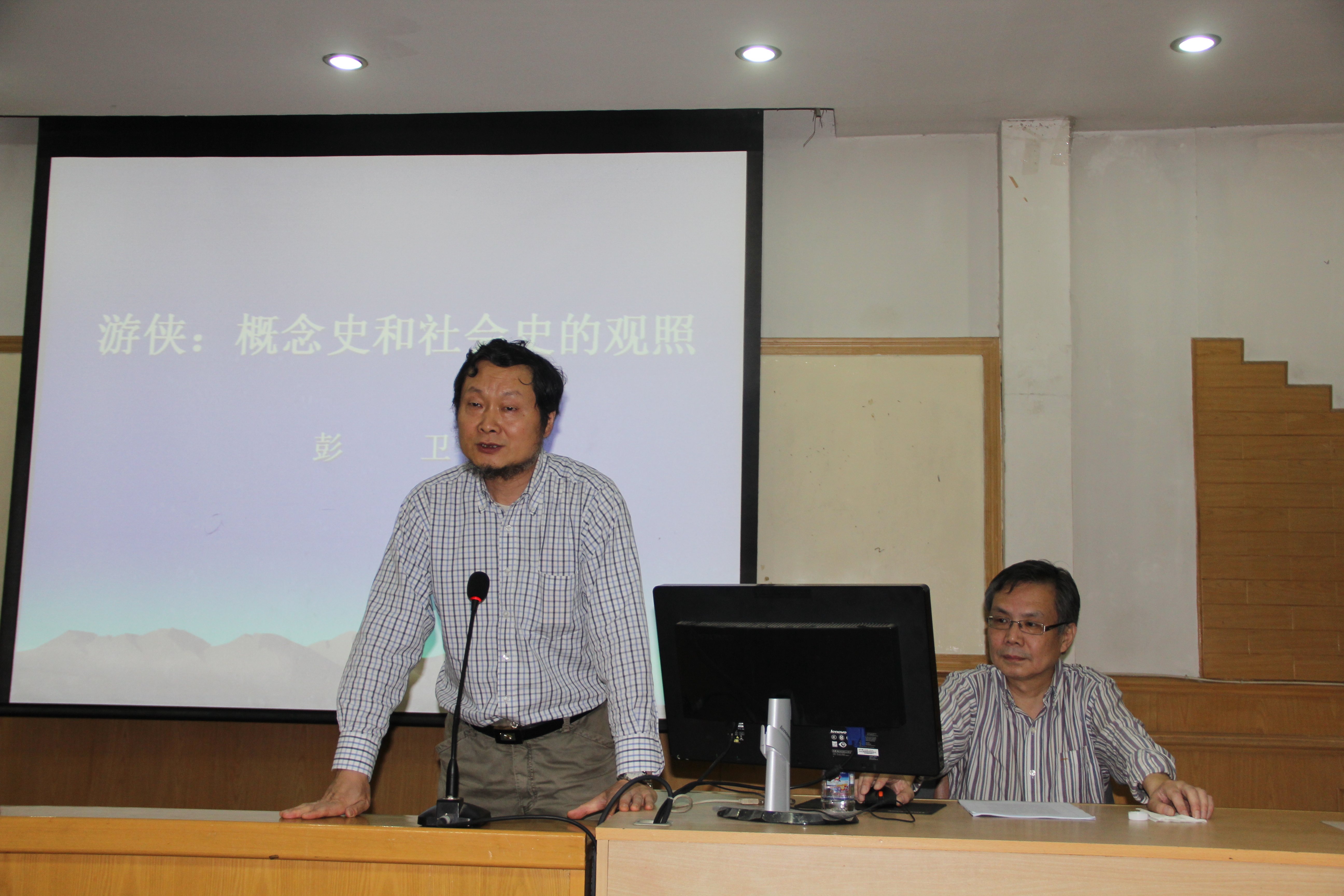 彭卫先生首先从游侠作为中国社会史上具有本土性的事项入手,阐述了自游侠出现之后就存在着关于其形象和历史的不断重建。在这一过程中主要存在着三种意义上的历史想象,即政治性想象、艺术性想象和学术性想象,其中,学术性想象把游侠放入学理的框架内进行思考,力图厘清游侠的真实原貌。接下来,彭先生对游侠的源头进行了考察,针对学界主要存在的七种游侠起源说,彭先生对其一一进行辨析,指出各种起源说的合理与不足之处;在此基础上,彭先生对游侠的概念进行了辨析,从最早提到游侠一词的《韩非子》入手依次进行梳理,兼及《说文解字》中的解释,使人们认清了游侠一词含义的历史流变。随后,彭先生论述了游侠的生命历程,分析了游侠存在的社会基础,进而引出了游侠的存在与国家秩序和社会秩序的关系,从而做到了“概念史与社会史的观照”。进而引申出了更深层次的史学理论方面的论题,即史家在评说游侠问题时实际上凸显了史家自己的伦理性,即历史学的伦理性问题,这是其他学者长期以来所忽略的领域,引起了在座学生的共鸣。